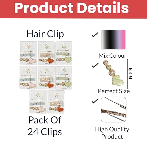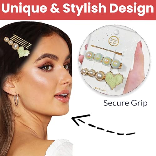 ❤ VARIETY OF DESIGNS: Our Set Includes 3 Heart-Shaped Clips, 3 Clips Featuring Random Designs (Assorted Styles), and 3 Chic Golden Bobby Pins, Providing Options for Different Hair Types and Styling Preferences
