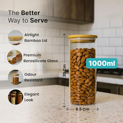 AIRTIGHT SEAL & AESTHETIC DESIGN: The Better Home glass containers feature airtight bamboo lids with food-grade silicone rings, ensuring your food stays fresh for longer.