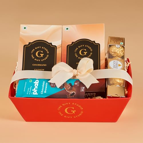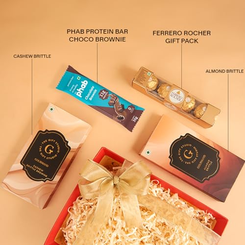 THE GIFT STUDIO.COM | Cocoa Bliss Gift Hamper | Almond & Cashew Brittles | Phab Choco Brownie Protein Bar | Premium Chocolate Hamper for Gifting | Corporate Gifts for Clients & Employees