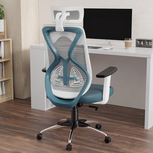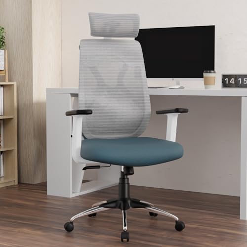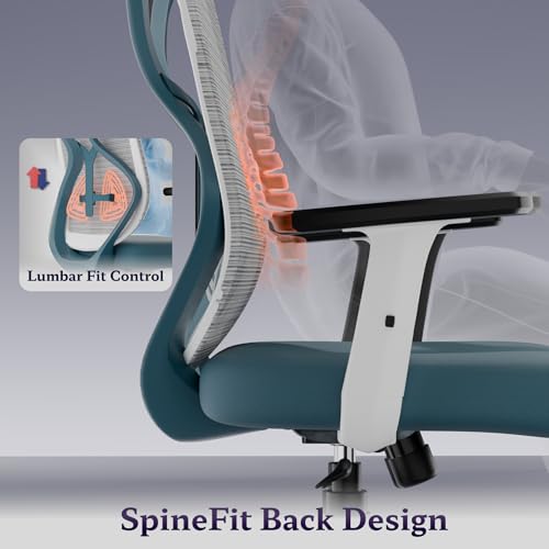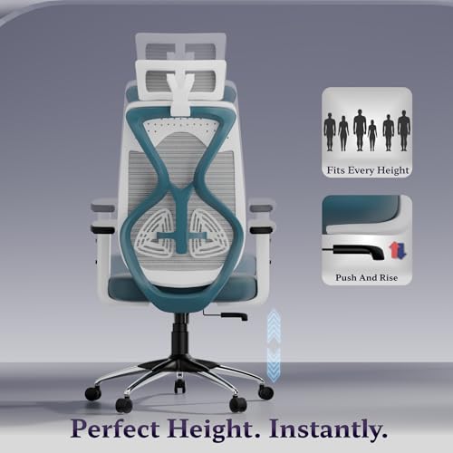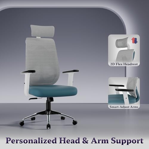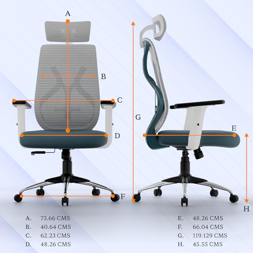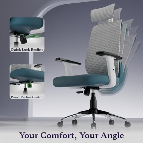 Titan Ergonomic Office Chair for Home & Office | Adjustable Armrests | 120 Recline | Lumbar Support | Thick Cushioned Seat | Heavy-Duty Base| 3 Years Warranty (White Blue)