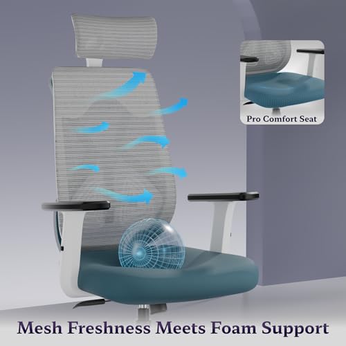Cool Comfort, Lasting Focus – The breathable mesh backrest promotes continuous airflow to keep you cool through long hours, while the high-density foam seat delivers reliable support for extended comfort and productivity.