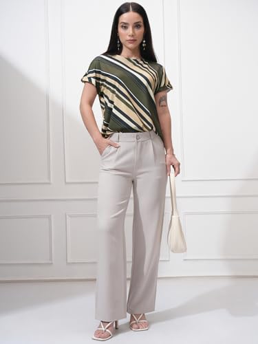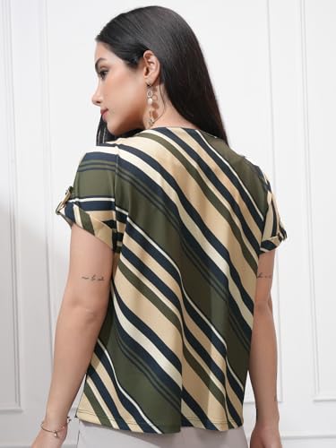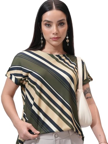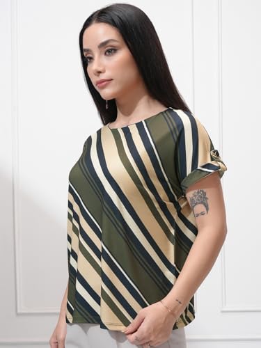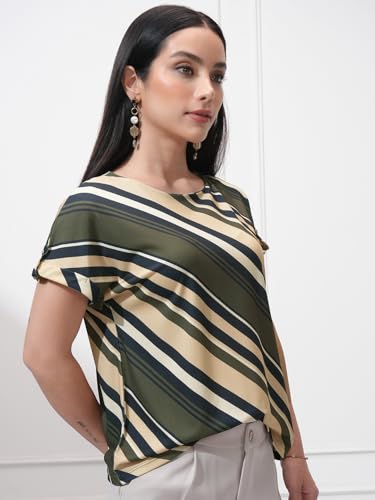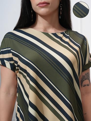 Tokyo Talkies Women Striped Round Neck Extended Shoulder Top