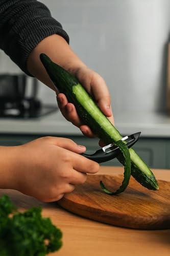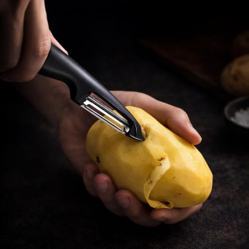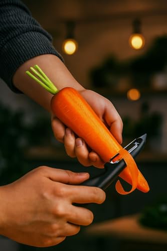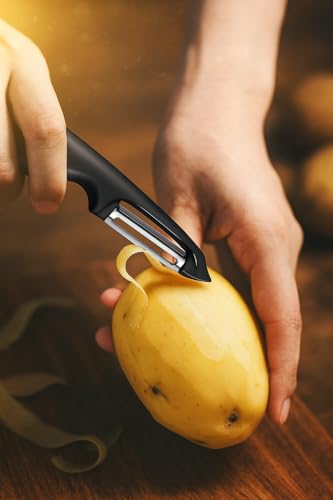 ✅ Comfortable and Ergonomic Grip: The ergonomically designed handle with a comfortable curve ensures a secure and comfortable grip. Say goodbye to wrist strain and arthritis pain, allowing you to effortlessly peel your favorite fruits and vegetables.