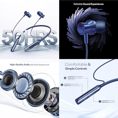 Massive 50 Hours Playtime Enjoy non-stop entertainment with up to 50 hours of battery life. Perfect for travel, office work, workouts, and daily commuting.