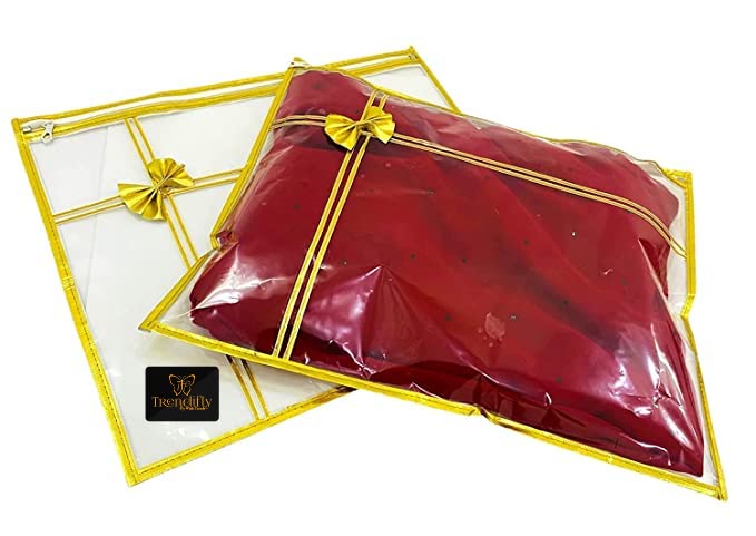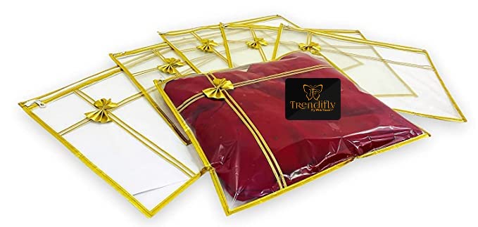 Product Name Trendifly transparent gold saree storage cover Colour Gold Material Plastic Dimensions 45L x 36W x 3H Centimeters Quantity Pack of 10