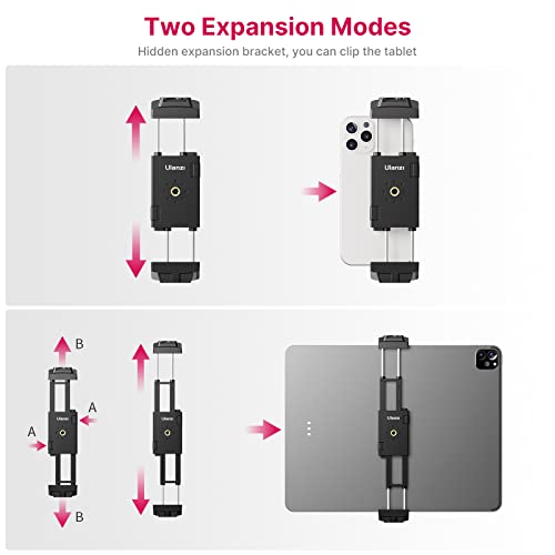 Vertical and Horizontal, Choose at will Compatible with all mobile phones Wide stretch, also clamps ipad: maximum support for clamping 12.9 inch ipad With good performance and high quality material, it may work for a long time.