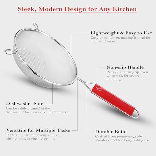 MULTI-PURPOSE UTILITY AND DURABLE & LIGHTWEIGHT? Ideal for filtering various liquids such as soups, juices, gravies, rice water, and more, making it a versatile kitchen tool.Lightweight design for ease of use, while remaining durable enough for frequent, heavy-duty straining tasks.