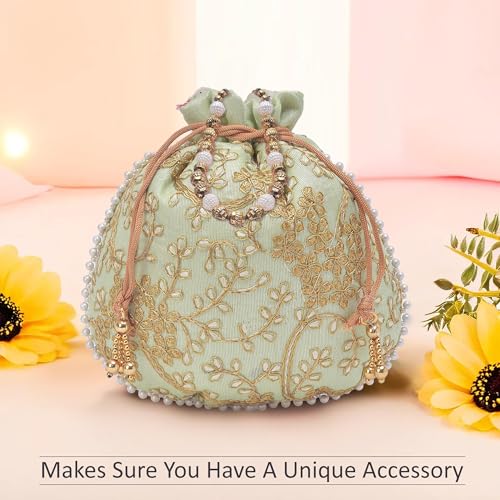 ✅ Stylish and Practical – This designer potli bags for women offers both beauty and convenience for any event since they are spacious enough to hold your essentials.