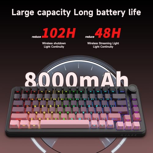 Tri-Mode Wireless Mechanical Keyboard for Maximum Flexibility Supports Bluetooth 5.0, 2.4GHz low-latency wireless, and USB-C wired connection. Easily switch between three devices and enjoy lag-free performance on Windows, macOS, iOS, Android, or Linux systems.