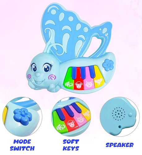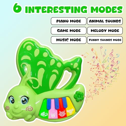🔀6 EXCITING MODES :- This butterfly piano has six different modes to play with. Piano Mode, play simple melodies and explore different notes. Animal Sounds Mode, discover fun animal sounds that spark curiosity. Game Mode, play the exciting game of press the light buttons. Melody Mode, different buttons play different melodies. Music Mode, experiment with beats and create a fun musical rhythm. Funny Sound Mode, makes funny sounds on pressing different buttons.