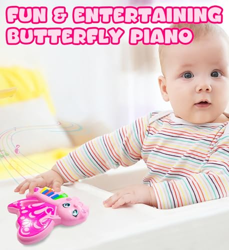 🤗EASY TO USE :- Our butterfly piano toy is very easy to use. Open the battery compartment cover at the back and install 2 AA batteries (not included in package) and screw back the cover and the piano is ready to use. Use the flower shaped convert button to change between different modes and it is ready to rock and roll and entertain your little kids.