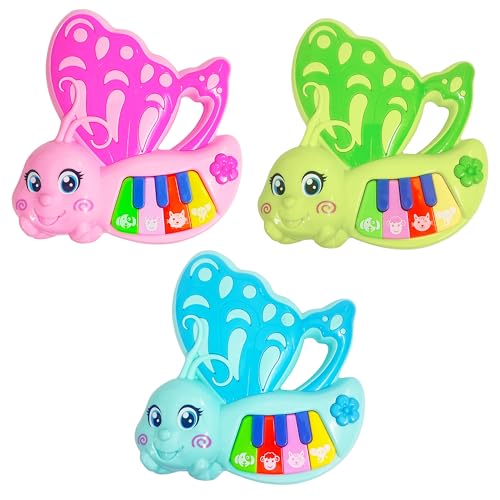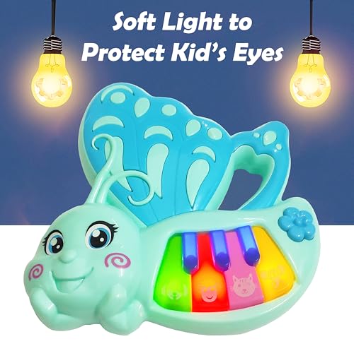 🦋CHARMING BUTTERFLY DESIGN :- This VGRASSP colorful butterfly shaped piano is sure to captivate toddlers minds. The bright colors and friendly eyes invite children to explore and play. Baby can learn to recognize different colors, training color recognition ability. The piano has seven colorful music keys with animal faces on it which produce different sound when pressed. Its cute butterfly design attracts kids and toddlers to play for long hours.