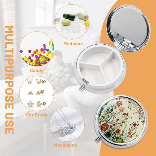 Stay organized in style with this elegant retro bronze floral pill box designed for everyday convenience. Compact, lightweight, and beautifully crafted, this small round case fits perfectly in your handbag or pocket, making it ideal for travel, office, or daily use. The built-in mirror adds extra practicality, allowing you to quickly check your look while on the go. With 3 separate compartments, you can neatly store vitamins, fish oil, supplements, tablets, or even small jewelry like rings and earrings.