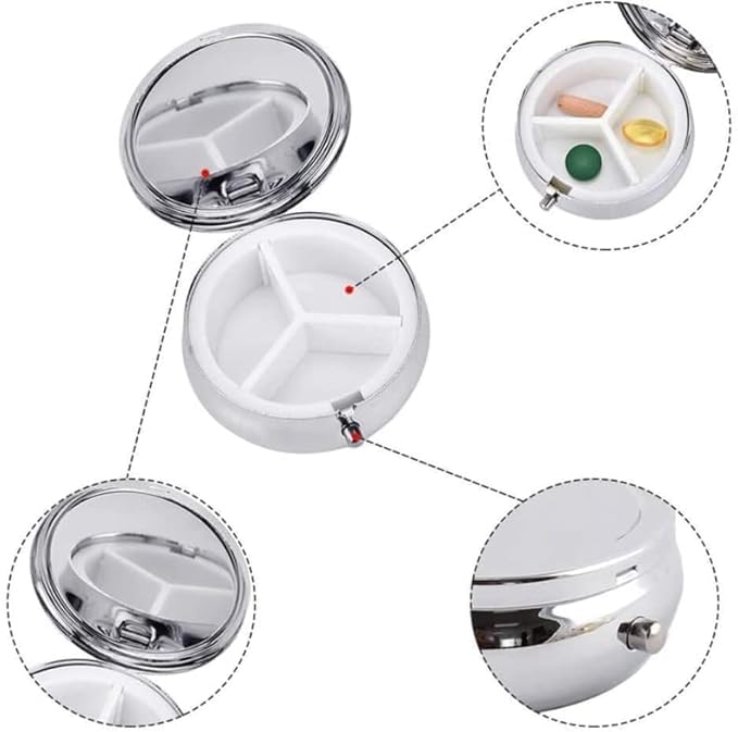 Smart 3-Compartment Organization: Features three separate sections to neatly organize pills, vitamins, earrings, or other small essentials, keeping items secure and easily accessible