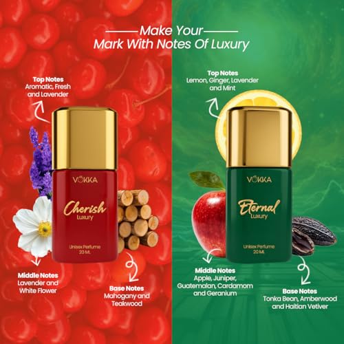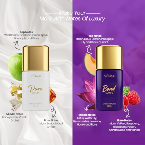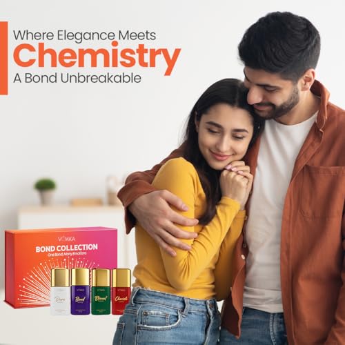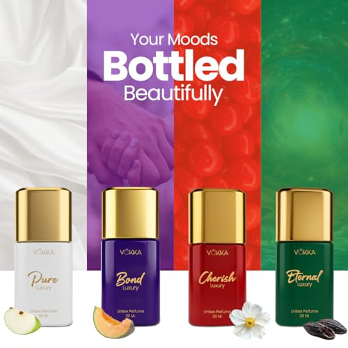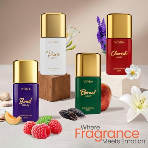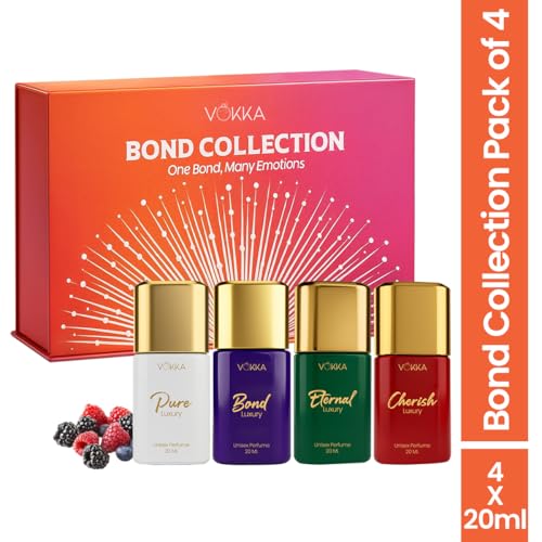 Discover the Vokka Bond Collection Luxury Perfume Gift Set, featuring 4 mini unisex fragrances – Pure, Cherrish, Bond, and Eternity – for a versatile scent experience that transitions from fresh and uplifting to bold and romantic. Designed as a pocket-friendly luxury, these premium perfumes for men and women offer elegance without compromise and long-lasting wear that keeps you smelling amazing all day. Perfect for gifting, this set makes birthdays, anniversaries, festive occasions, and Diwali gifts for family and friends or employees extra special, providing a thoughtful and memorable way to surprise loved ones. Each fragrance tells its own unique story, ensuring every moment is accompanied by a signature aroma.