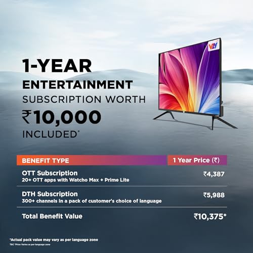 Warrant/ Services- 3-Year VZY Standard Warranty on Product from the date of purchase (T&C Apply) 1-year standard, Warranty claims can be processed using Warranty Card, not Covered warranty HDMI/AV Cable, Remote, Batteries, Power adapter, Tv stand | service engineer will install your new TV, either on wall mount or on table top. Installation and demo are provided free of cost. If any issue please contact VZY Customer Support at