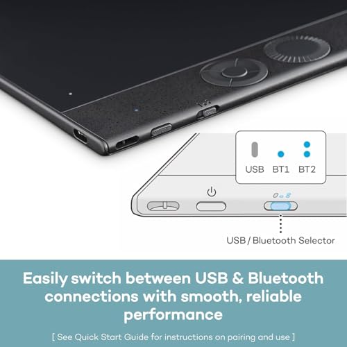 WIRELESS FREEDOM: use Intuos Pro with USB or connect wirelessly via Bluetooth to multiple computers with a simple switch