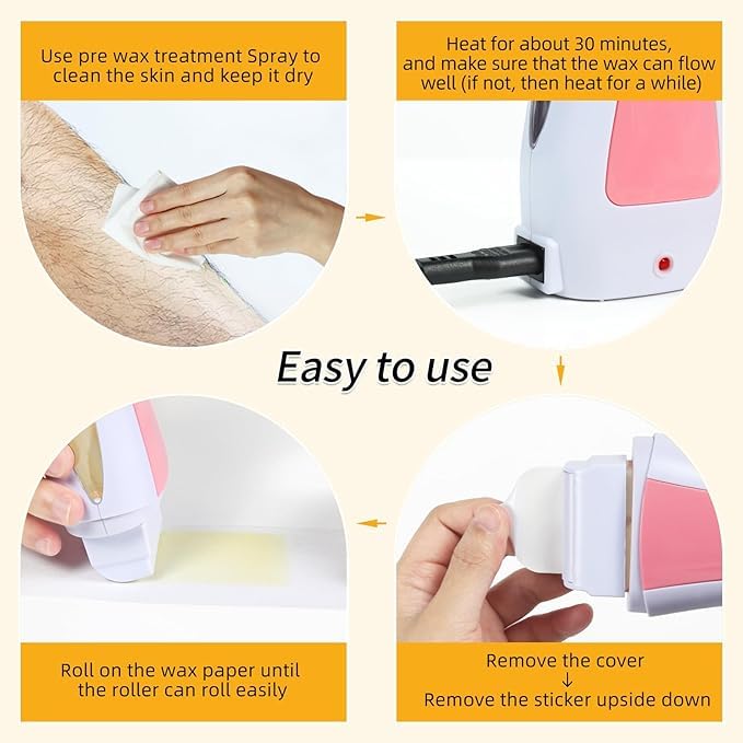 Quick-Heating : Experience the convenience of our roll on wax warmer in record time(30 minutes), ensuring you’re ready for hair removal whenever you need it. Perfect for those who value efficiency