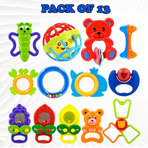 🧸 Early Educational Toy: When infants begin to grasp, shake, pull, rotate, or start teething, this rattle and teether set is the perfect toy 👶🍼 to support their early development and curiosity.