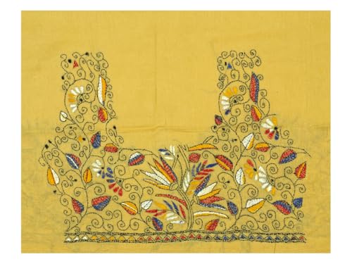 Soul of Bengal brings exclusive Santiniketan Kantha Stitch Blouse Piece that mesmerizes everyone with it’s exquisite and elegant look. Bengal has an old tradition of Kantha Embroidery. Primarily the running and darning stitches done on the fabric creates effect of subdued richness and elegance. Each piece displays the talent and skill of the rural women revealing their individuality and innovation. Kantha work involves complex artistic handwork done by the artisans with a blend of exquisite embroidery in ornamental running stitch. It looks amazingly fabulous when paired with matching Saree. This is soft and comfortable to wear when stitched according to the style you desire. This Kantha embroidery enhances your style quotient.