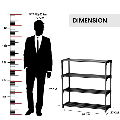 Compact Design: This 4-tier stackable shoe rack is perfect for organising shoes in small spaces like homes, offices, bedrooms, living rooms, kitchens, bathrooms, closets, and entryways.