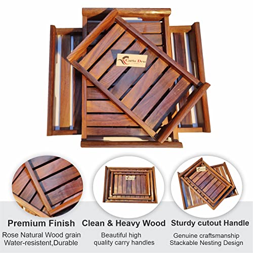 ROYAL QUALITY AND TWO DESIGN TRAYS: Use them to serve drinks breakfast in bed coffee at hotels bars or coffee shops. Made from CARTADEN these durable serving trays. This Trays is available in two Design, Cutout Handle and Upper Round Handle Serving Tray Set of 3