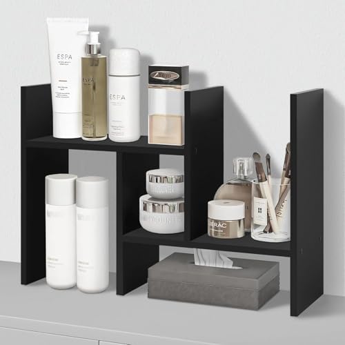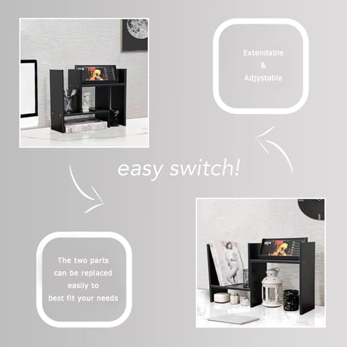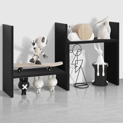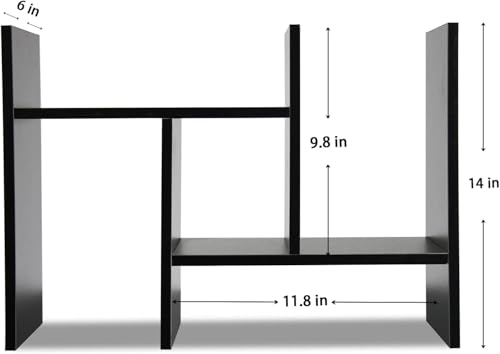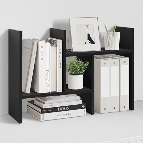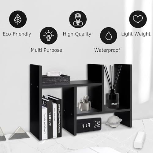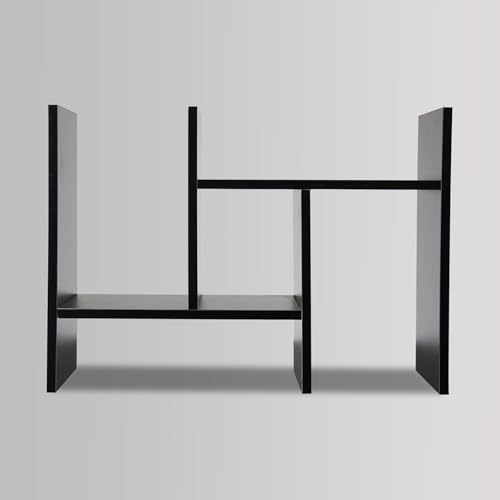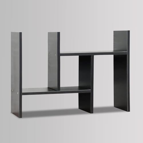 Wooden Table Top Bookshelf for Home Office and Living Room Tabletop Stand Display Rack Storage Organizer for Kitchen Bedroom Library Space Saving Standing Bookcase (Dark Black)