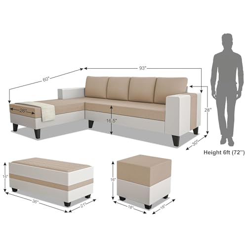 Product Dimensions(In Inch): 6 Seater Sofa: Length 93 X Width 60 X Height 28, Coffee Table: Length 36 X Width 21 X Height 16, Puffy: Length 18 X Width 18 X Height 16, Seating Height: 16.5