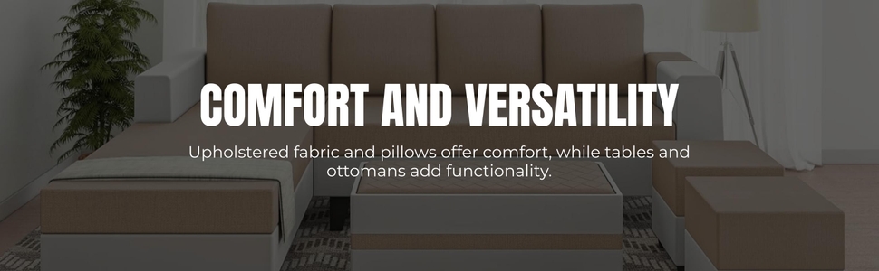 Enhanced comfort: The sectional upholstery fabric and included four small pillows provide exceptional comfort and support, ensuring a cozy lounging experience for everyone.