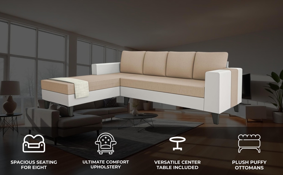 Spacious and accommodating: Designed as a left-facing L shape, this sofa set comfortably seats up to eight individuals, perfect for gatherings and family gatherings.