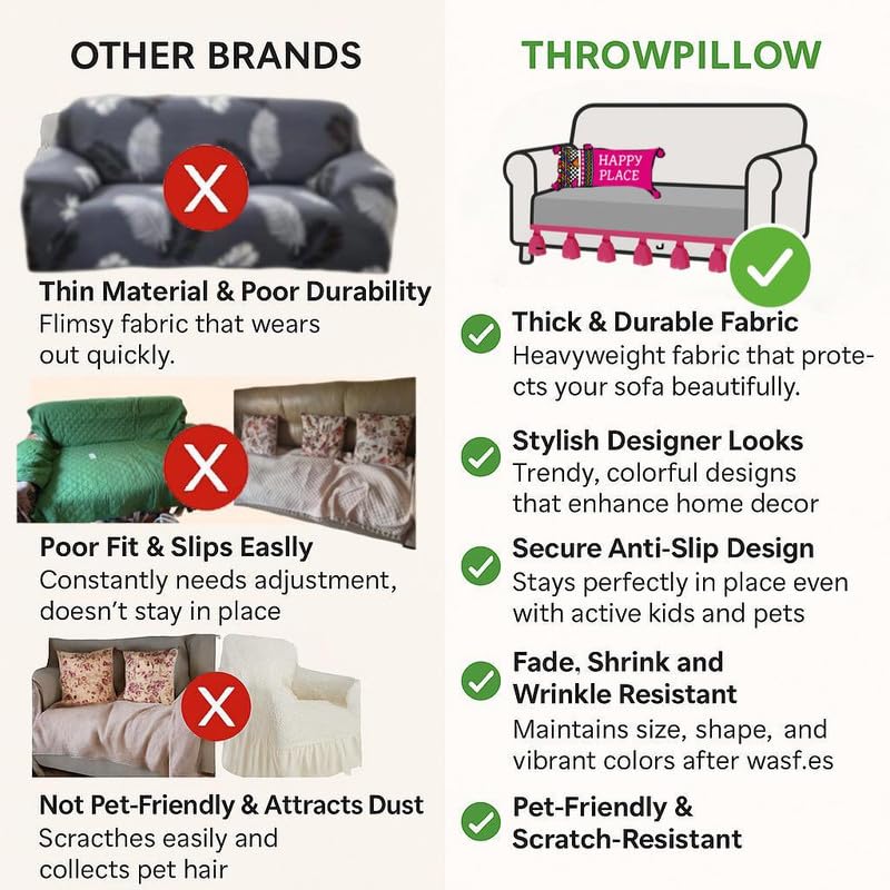 ANTI SLIP SOFA COVER: WRINKLE-FREE & SHRINK RESISTANT – This 2 seater sofa cover with tassels is made from premium wrinkle-free fabric, ensuring a polished, crease-free look for your living room, office, or lounge. The shrink-resistant material retains its shape and size after multiple washes, making it a durable and stylish choice.