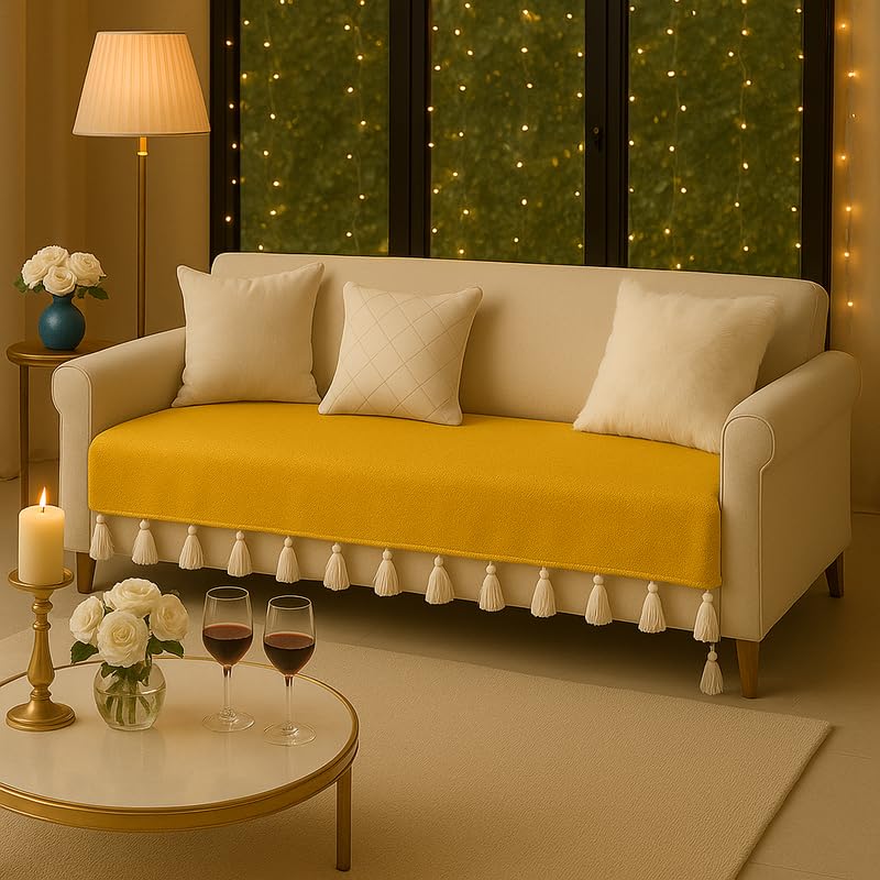 SOFA COVER BOHO STYLE: Add a touch of artistry with this 2 seater sofa cover with tassels, designed for a relaxed, bohemian-inspiYellow space. The playful tassels enhance the charm of your sofa cover 2 seater, making it perfect for modern, rustic, or eclectic decor. Whether upgrading your living room sofa cover 2 seater or refreshing your space for festivals, this sofa seat cover 2 seater with tassels brings effortless elegance. A must-have for seasonal makeovers or bold everyday styling!