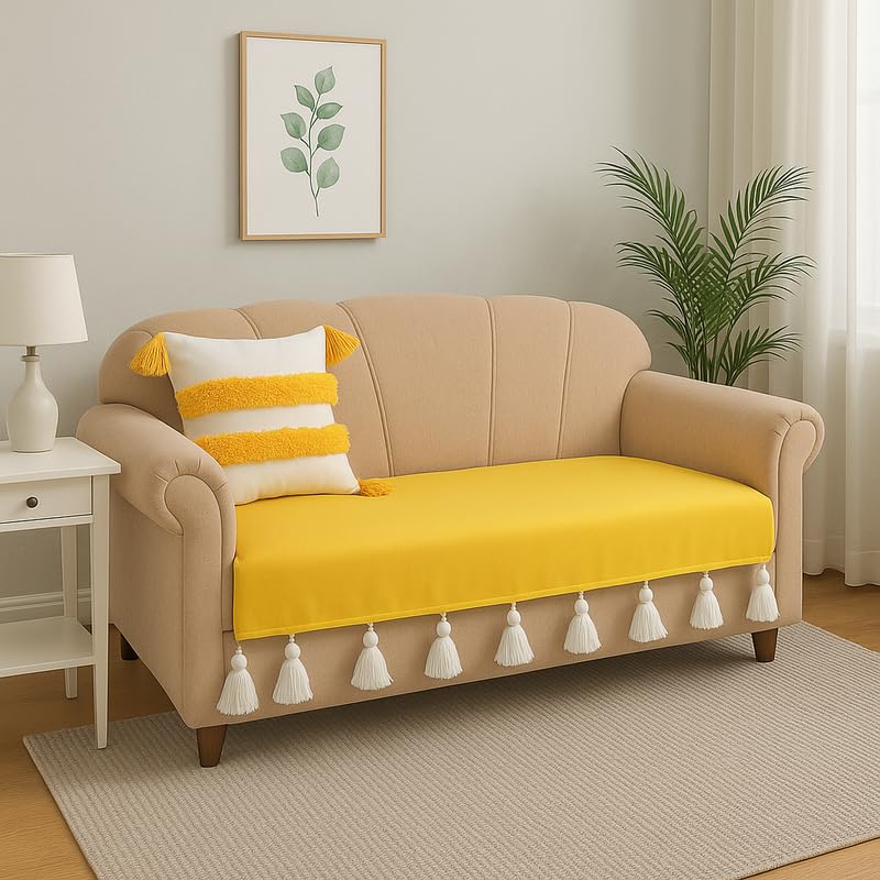 SOFA COVER BOHO STYLE: Add a touch of artistry with this 2 seater sofa cover with tassels, designed for a relaxed, bohemian-inspiYellow space. The playful tassels enhance the charm of your sofa cover 2 seater, making it perfect for modern, rustic, or eclectic decor. Whether upgrading your living room sofa cover 2 seater or refreshing your space for festivals, this sofa seat cover 2 seater with tassels brings effortless elegance. A must-have for seasonal makeovers or bold everyday styling!