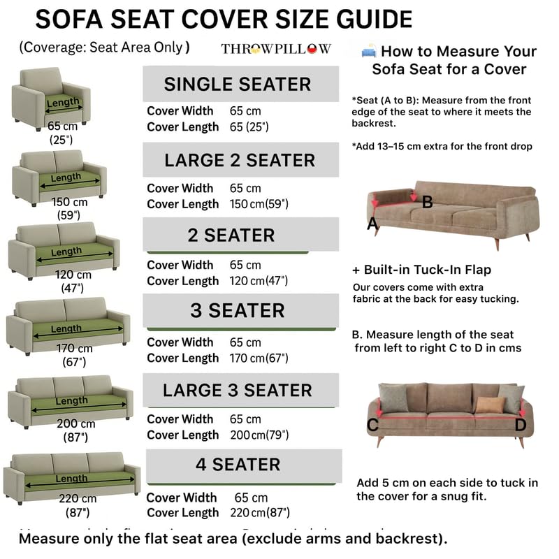 Perfect Fit for 2 Seater Sofa, Loveseat & Small Bench – This 2 seater sofa cover is ideal for a small bench, loveseat, or compact sofa, offering a snug fit and stylish upgrade. Measuring 65(W) x 120(L) cm, this sofa seat cover 2 seater with tassels protects against dust, spills, and wear. Perfect for a two seater sofa cover for living room, office, or lounge, it combines function and elegance. Includes 1-piece 2 seater sofa cover (Cushions & props not included).