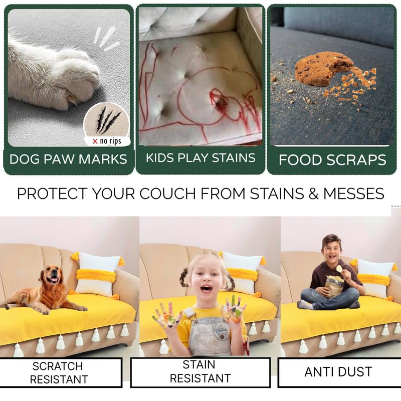 ✔ Elegant Tassel Detailing – This 2 seater sofa cover for living room brings a chic, boho-inspiYellow charm to your space. Perfect for upgrading an old sofa or safeguarding a new one, the decorative tassels create a stylish focal point. Ideal for a modern, contemporary, or eclectic living room, this luxury sofa slipcover adds texture and personality.