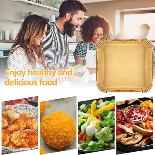Package Content – Air Fryer Disposable Paper Liner I Material: Paper I Color: Brown I Shape: Round and Square I Size: 7.9 Inch and 8 Inch I 100% Food-Grade I Easy to Clean & Non-Stick I Greaseproof and waterproof I Baking paper for air fryer, microwave oven, oven, steamer, cooking utensils, etc. I chemical-free and toxic-free.