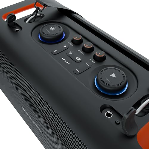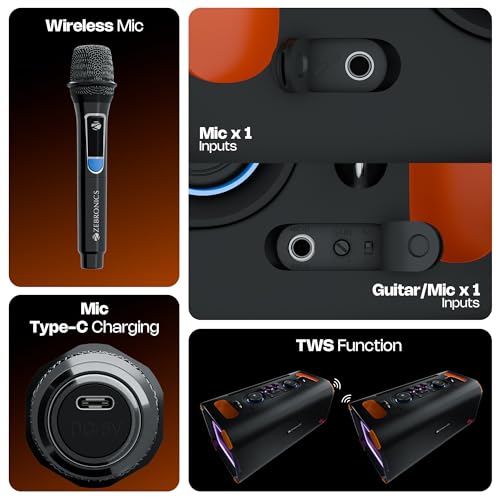 KARAOKE FUNCTION: Host the ultimate karaoke night with the speaker that comes with colorful RGB lights, a wireless mic, plus dedicated inputs for an extra mic or guitar for vibrant live performances.