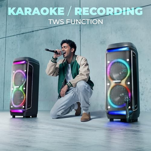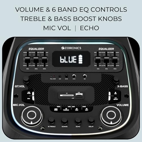 AUDIO CONTROLS: Easily control your music with built-in media buttons to adjust volume, skip tracks, or pause playback. Fine-tune sound using 6-band EQ, Bass Boost, and dedicated mic, echo, treble, and bass knobs.