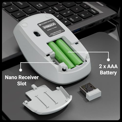 ZEBRONICS Wireless Mouse, 2.4GHz, 3200 DPI, 3 Buttons, Comfortable & Ergonomic, USB Nano Receiver, Power-Saving Mode, Works on Most Surfaces, for Mac | Laptop | Computer (Freego, Grey)