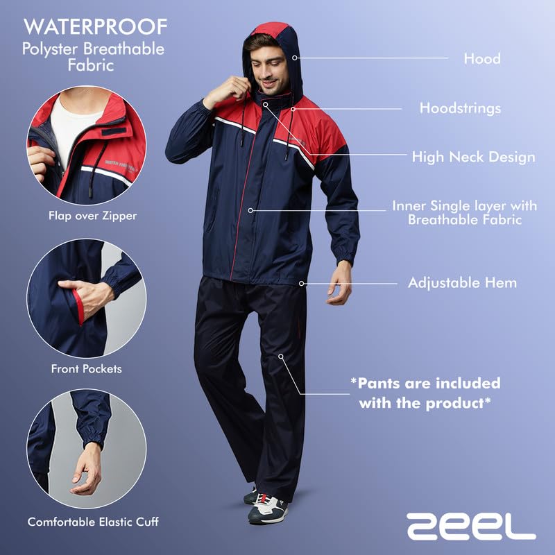 WATERPROFF PROTECTION: The Zeel waterproof rain coat jacket for men comes with drawstrings at the top as well as a bottom that gives you advanced protection against rain and wind along with PVC coating on the Lining for 100% water resistance.