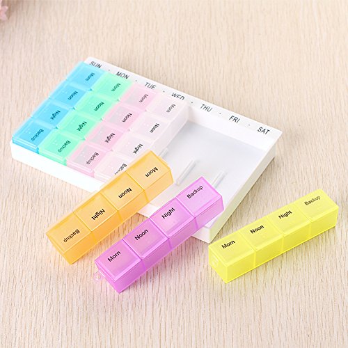 Package includes: 4*7 grids medicine boxes