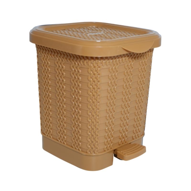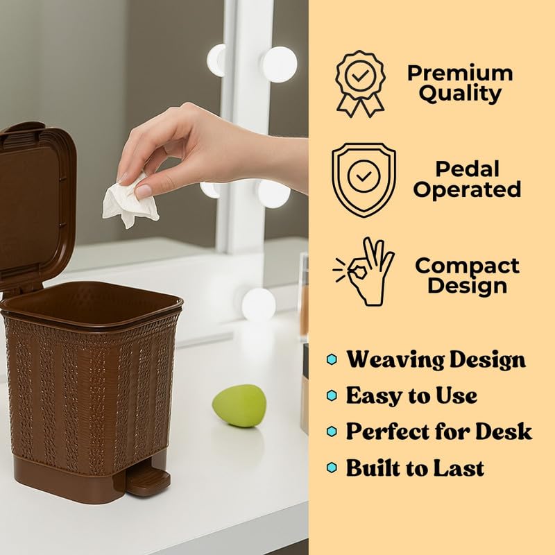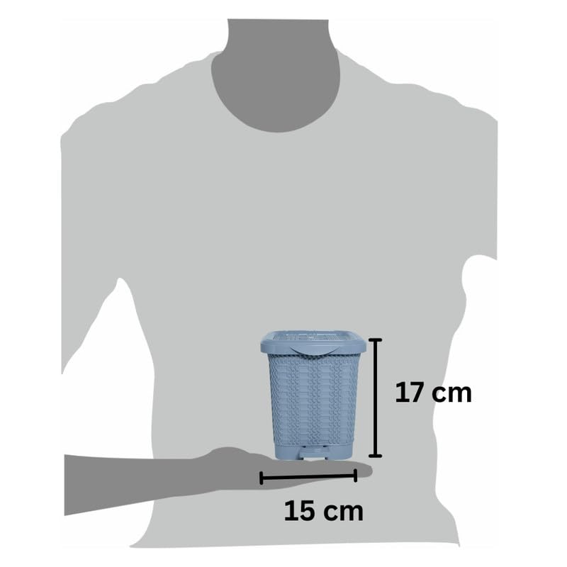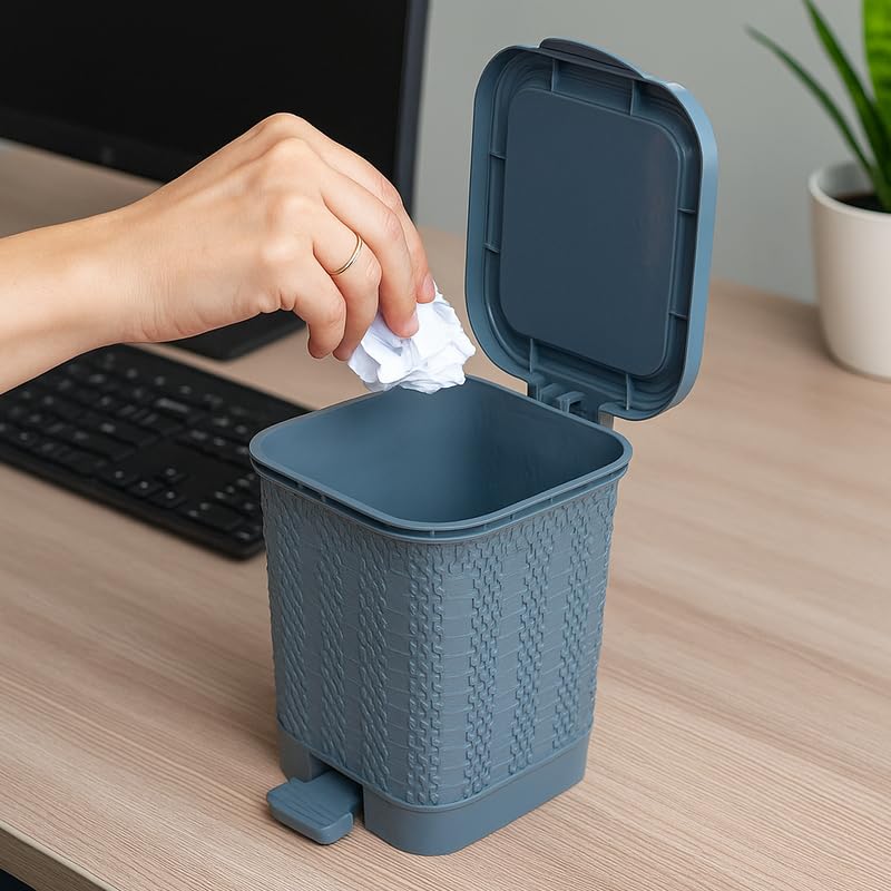 Keep your surroundings clean and stylish with this Small Plastic Pedal Dustbin 2 Litre Capacity designed to bring convenience, hygiene, and beauty to your everyday spaces. Made from high-quality durable plastic, this compact waste bin combines functionality with a charming woven rattan-style finish, giving it a decorative look that complements any room décor from modern offices to cozy home corners. This mini dustbin with lid is perfect for those who prefer cleanliness without clutter. Its pedal-operated mechanism ensures a hands-free experience, keeping your hands germ-free while disposing of waste. The smooth open-close motion of the pedal lid is easy to use for kids and adults alike, making it a safe and hygienic choice for homes, salons, parlours, bathrooms, or study tables. Despite its small size, the 2-litre capacity is ideal for collecting daily desk or countertop waste like tissue, wrappers, and paper bits. The lightweight portable design allows you to move it effortlessly between rooms—place it on your kitchen slab, under your office desk, or beside your dressing table for quick cleanups. The easy-to-clean inner surface prevents odour buildup and ensures hassle-free maintenance; simply rinse with mild soap and water to keep it fresh and spotless. The tight-fitting lid keeps flies, smells, and messes at bay, maintaining a cleaner, healthier environment. Perfect for office desks, kitchens, bathrooms, parlours, salons, kids’ study tables, and countertops, this stylish dustbin is both practical and decorative. Whether you need a compact pedal bin, small bathroom trash can, or mini plastic waste basket, this product delivers versatility with a touch of elegance. Choose this durable, modern, and hygienic small pedal dustbin to make cleanliness a part of your everyday lifestyle. Functional, lightweight, and long-lasting—it’s the perfect addition to your smart and tidy space.